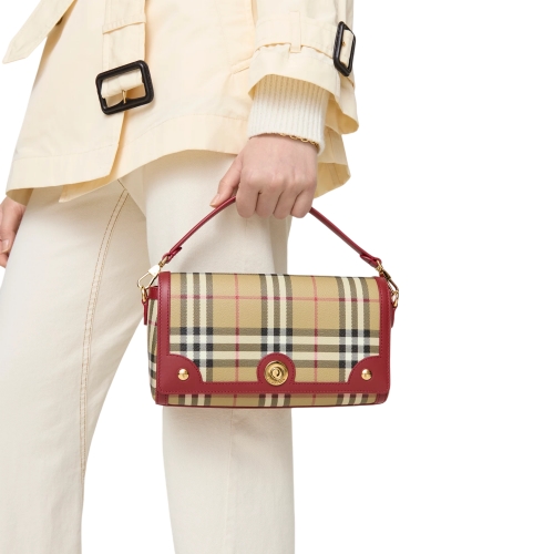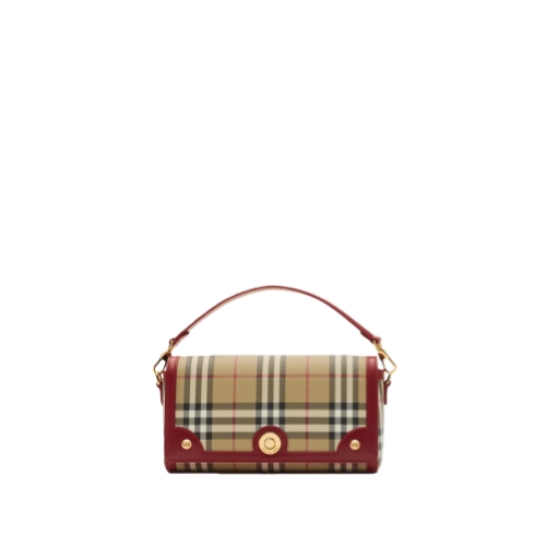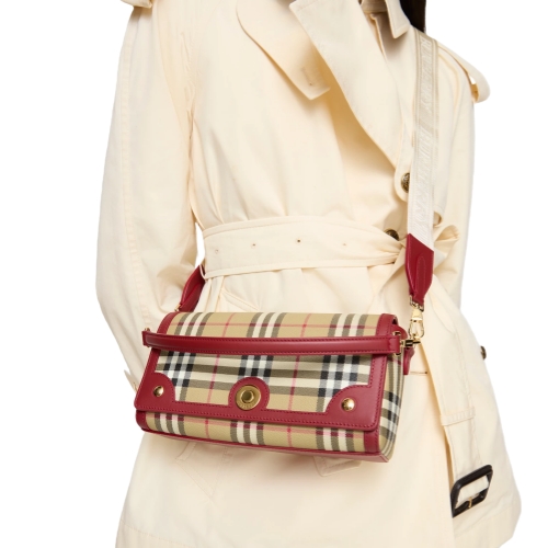 An archive-inspired crossbody bag made in Italy from a coated cotton blend printed with the Burberry Check and lined in cotton. The Note is trimmed with smooth calf leather and has a logo-engraved closure. Carry across the body or wear on the shoulder using the detachable strap.