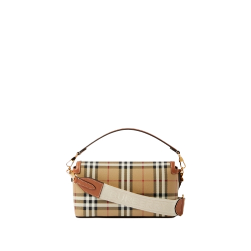 An archive-inspired crossbody bag made in Italy from calf leather and Burberry Check with a cotton lining. Carry by the top handle, across the body or wear on the shoulder using the detachable strap.