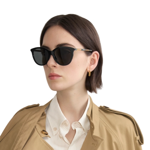 – Printed Burberry lettering at temples