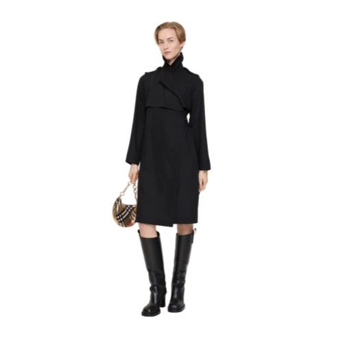 A wrap dress crafted in Italy from wool twill. Drawing inspiration from our heritage rainwear, the design features signature trench details including a gun flap, epaulettes and a storm shield at the back. Shaped to a regular fit with a B buckle belt to adjust the waist.