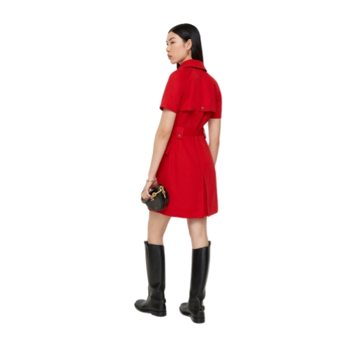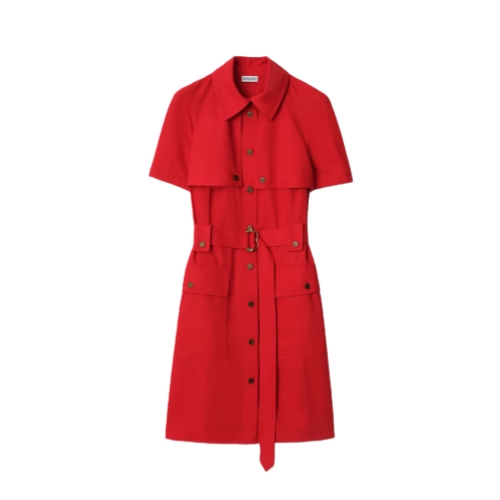 A short-sleeved dress crafted from wool twill in seasonal crayon red – created as part of our Year of the Horse capsule. Drawing inspiration from our heritage rainwear, the design's signature trench details include a gun flap and a storm shield at the back. The style features cargo pockets and is shaped to a straight fit with an adjustable B buckle belt in an antique brass finish.