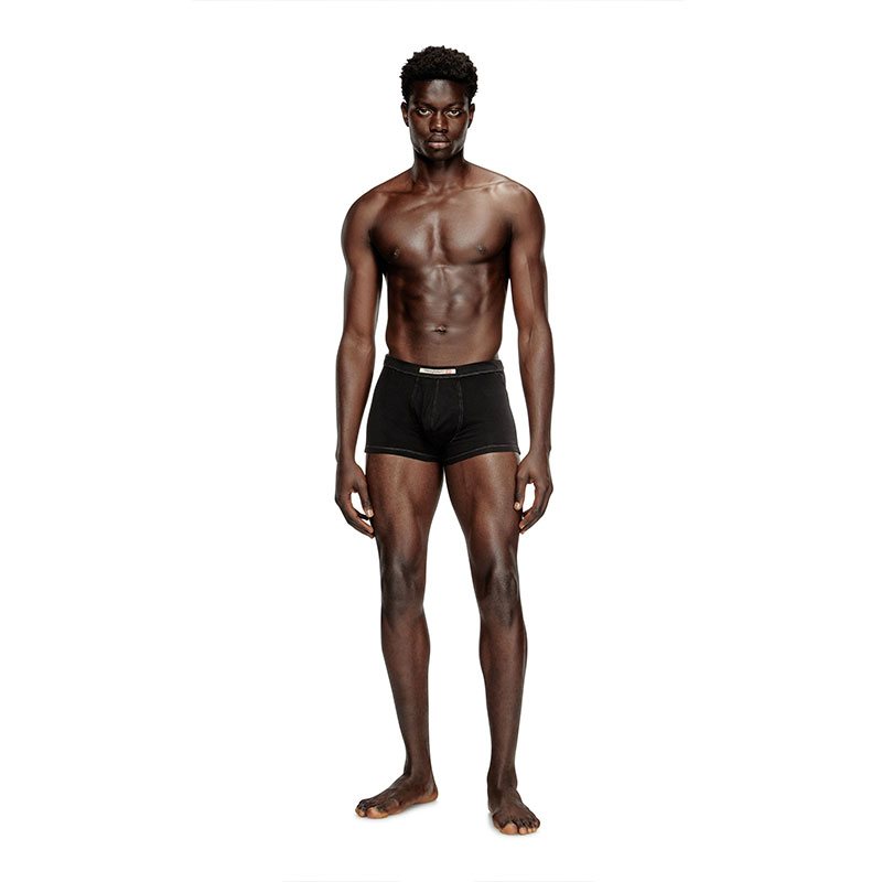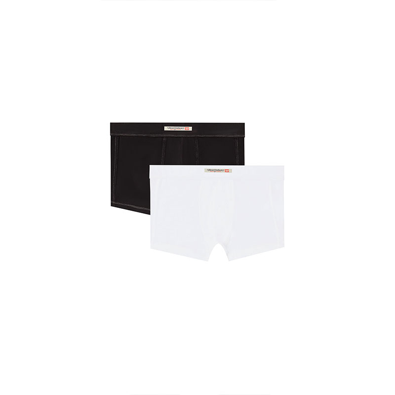 Men's boxer briefs cut from stretch cotton. This pack of two includes a white and treated black pair, each detailed with the iconic logo flag traditionally seen on the small pocket of Diesel jeans.