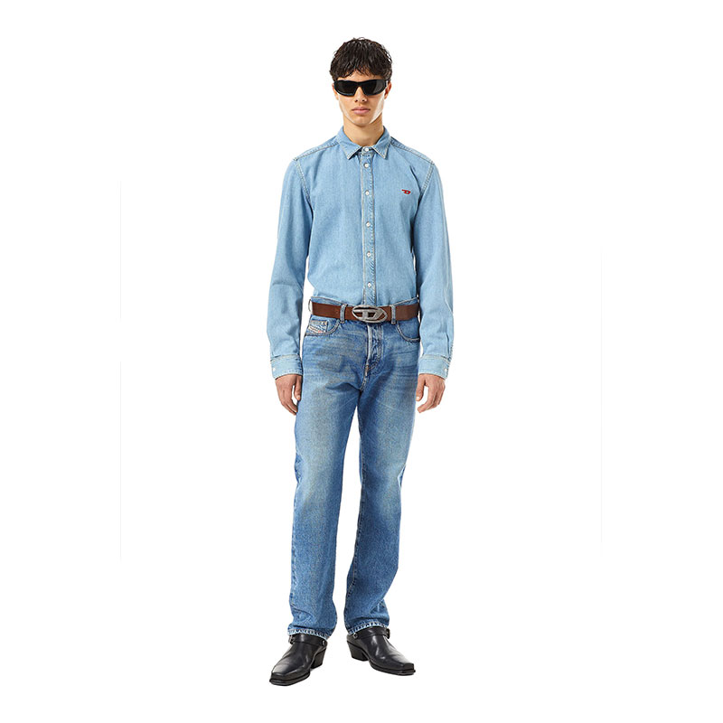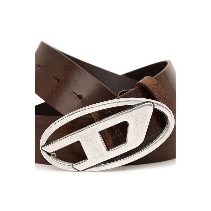 Diesel Men 3.9cm leather belt with D buckle Brown X08516PR666