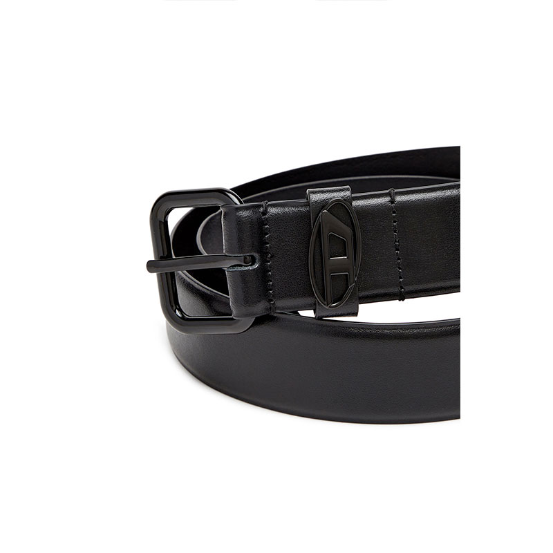 An all-gender design, this black belt is crafted from high-quality leather and fastens with a polished silver-tone buckle. Note the metal Oval D plaque embellishing the loop.