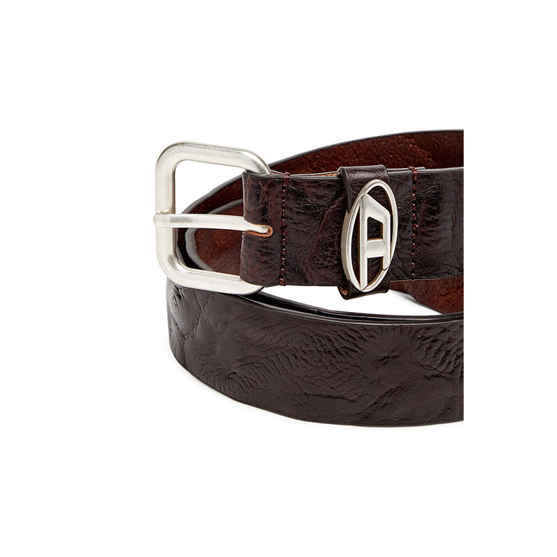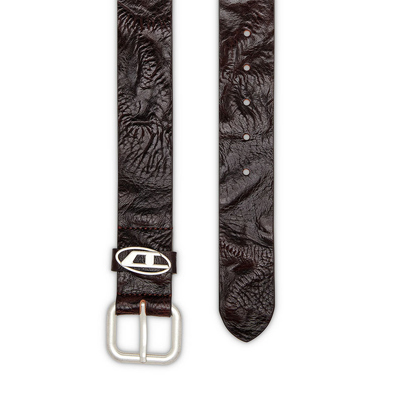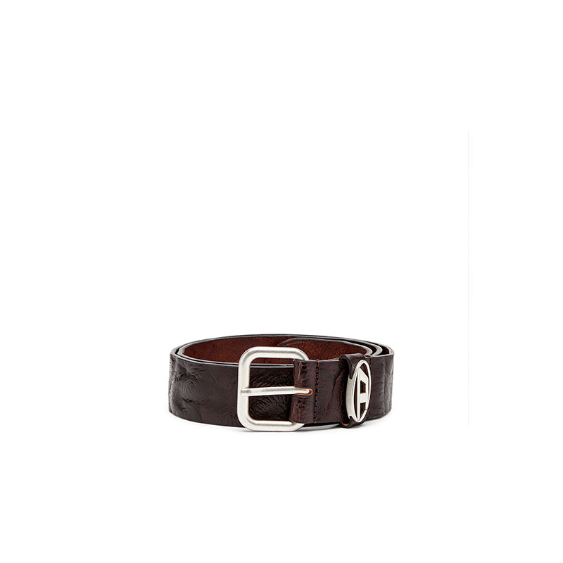 Diesel Men 3.9cm logo-plaque wrinkled leather belt Dark Brown X10314PS681
