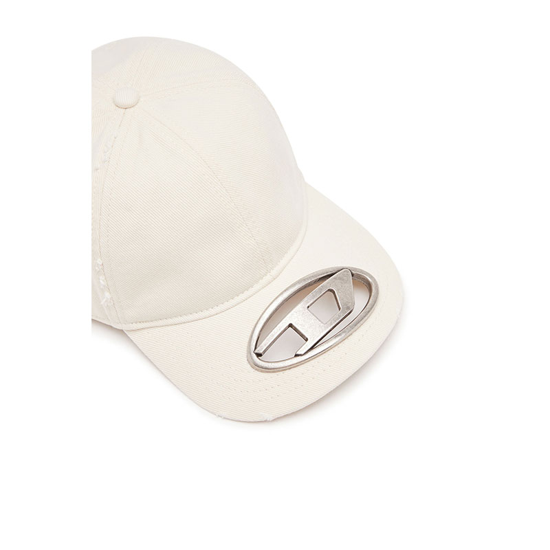 Men's baseball cap built from heavy cotton twill, treated for a washed look. The peak features an oval cutout, embedded with a metal Oval D plaque.