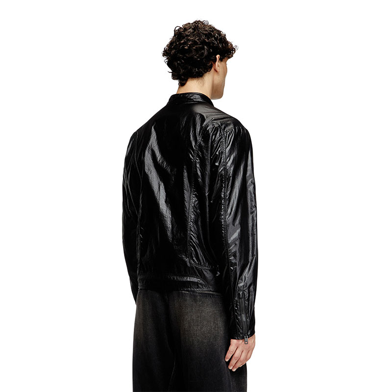Made using recycled materials, this men’s biker jacket reworks a racer silhouette in panels of chintzed micro ripstop, characterised by a shiny, glazed finish. Cut for a regular fit, it's detailed with piping and has a mesh-lined interior. A discreet Oval D logo accents the sleeve.