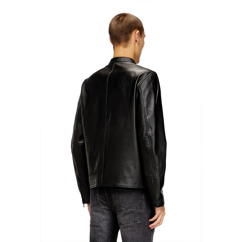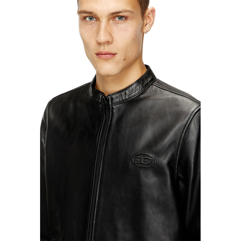 An all-black design, this men's jacket is crafted from leather that’s tumbled and waxed for suppleness and lustre. Cut in a clean biker silhouette with a minimal collar and classic zip hardware, it features an embossed Oval D logo at the chest. A lining ensures easy layering.