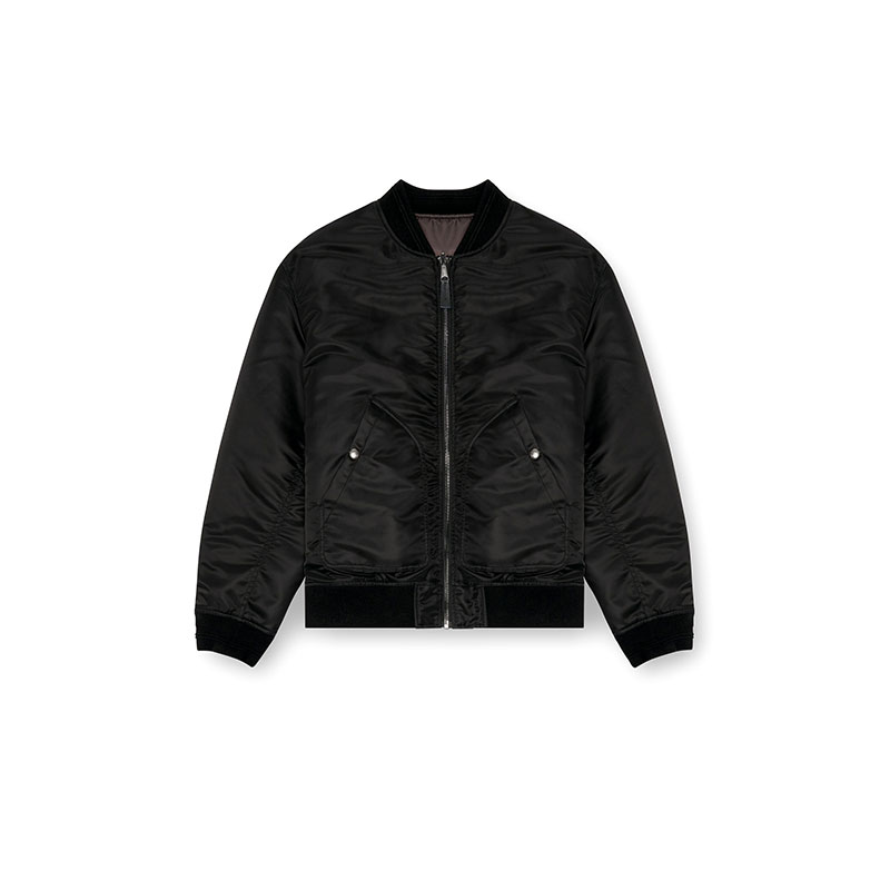 Men's nylon bomber jacket, cut from certified recycled nylon. It's lightly padded for warmth, and detailed with a tonal Oval D outline embroidered on the back and slightly ruched seams along the sleeves.