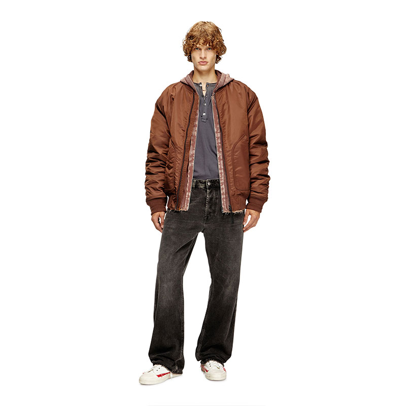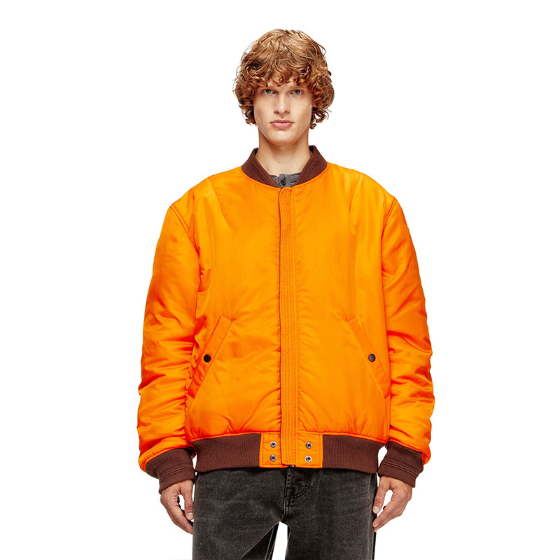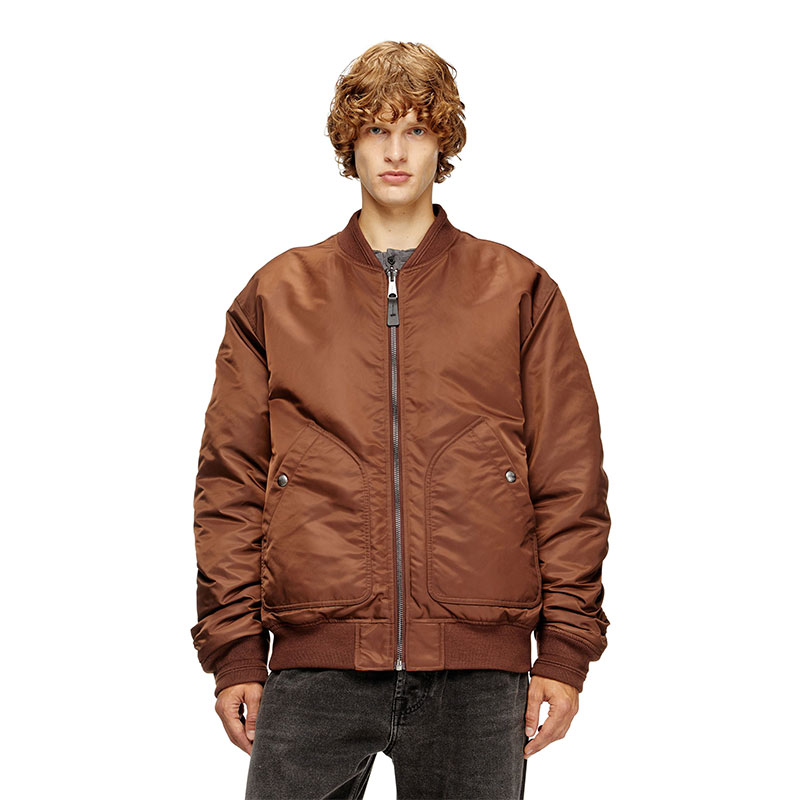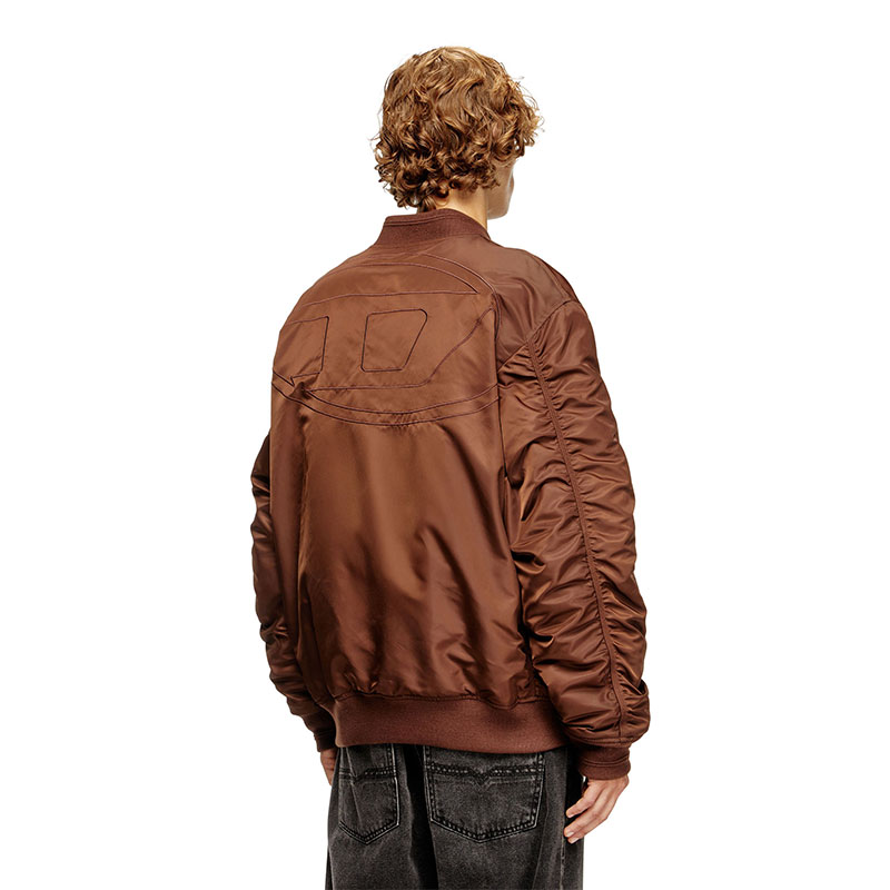 Men's nylon bomber jacket, cut from certified recycled nylon. It's lightly padded for warmth, and detailed with a tonal Oval D outline embroidered on the back and slightly ruched seams along the sleeves.