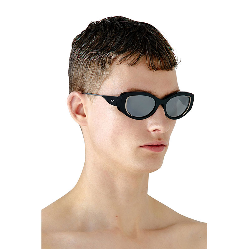 Diesel Men Cat-eye style sunglasses Black/Flash mirror LX200100LEN