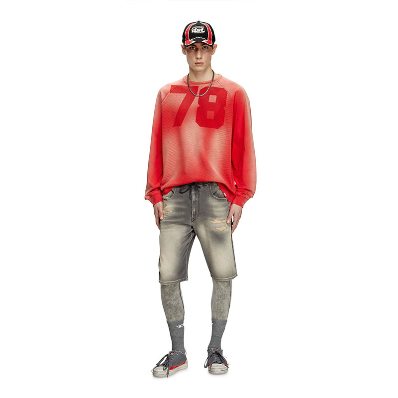 This light grey wash is made using organic cotton. It embodies Diesel's DNA destroyed aesthetic through bold abrasions and shaded whiskers.