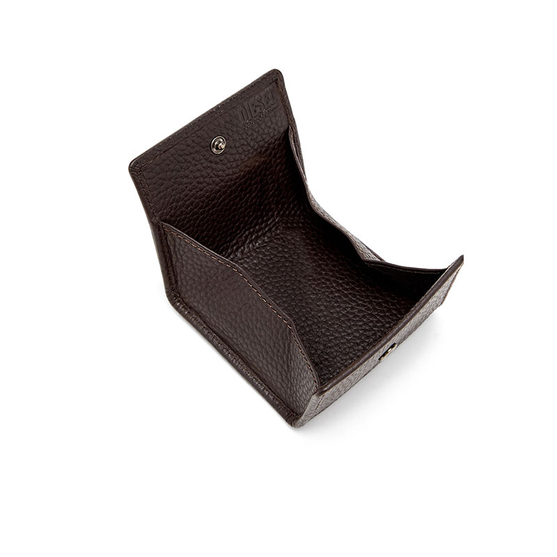 This coin pouch is crafted from supple grainy leather, simply embellished with a tonal Oval D plaque. Fastened with a snap-button.