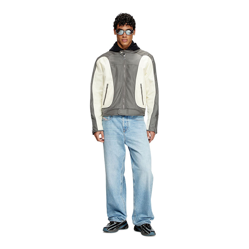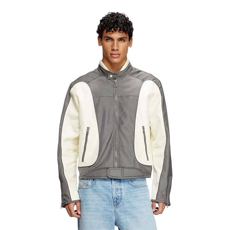Diesel Men Colour-block biker jacket with piping Grey/White A173690PDAI