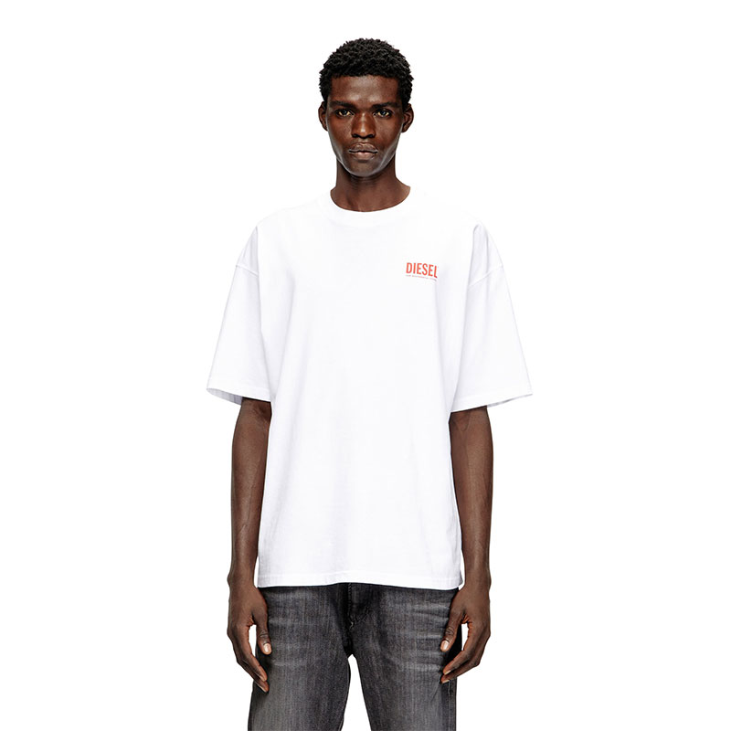 Relaxed fit T-shirt with a crew neck and short sleeves, made of organic-cotton jersey. It features a Diesel For Successful Living print on the left chest and an extra-large Diesel Biscotto logo printed on the back. Perfect for an iconic, DNA-infused look.