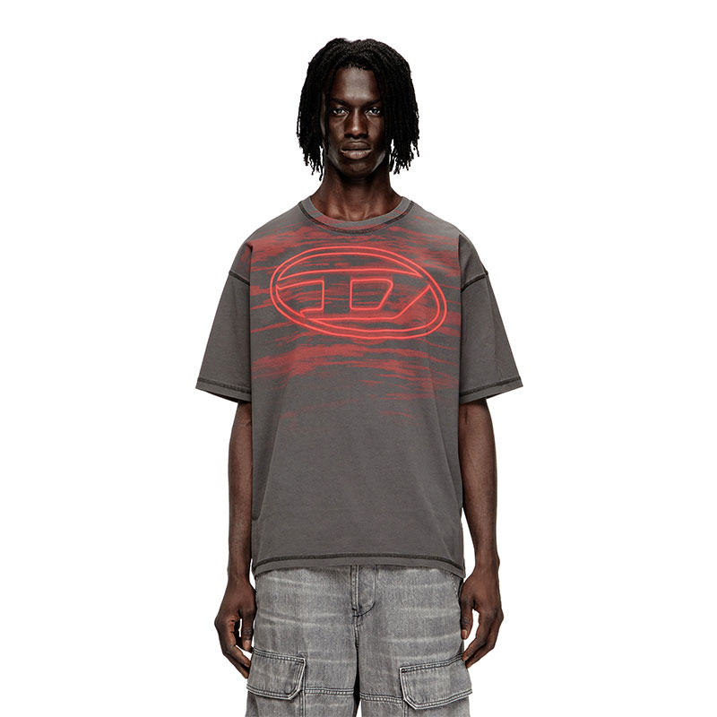 Cotton t-shirt with short sleeves and relaxed fit. The crew neck features a ribbed finish, while there's a large Oval D print on the front.