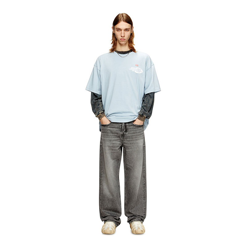 Diesel Men Cotton T-shirt with graphic print Light Blue A187310PLAT