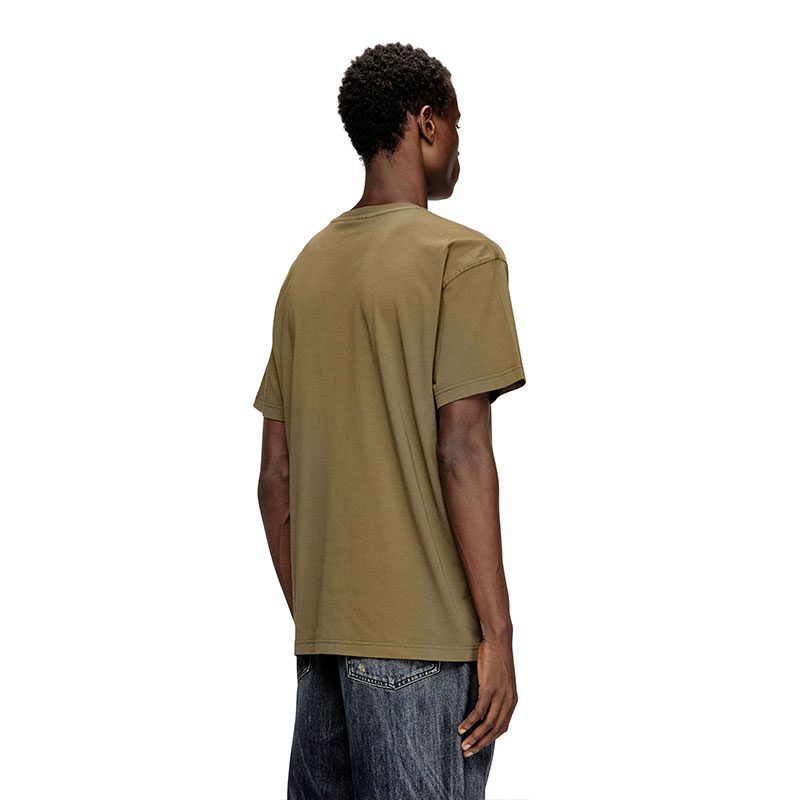 Crew neck T-shirt with short sleeves and a regular fit. Made of organic-cotton jersey, it features an all-over laser print on the front that gives the garment a distinctive look. The Diesel logo stands out on the chest, adding a touch of character and recognizability to the design. The red Diesel label is positioned on the left side.