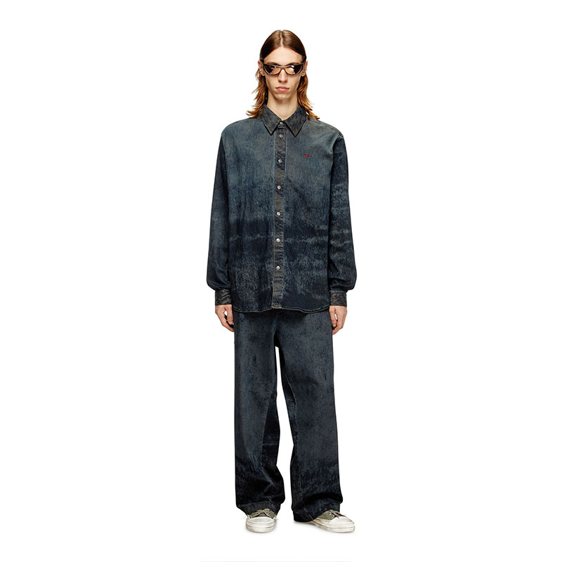 Shirt with treated finish, featuring long sleeves and a regular fit. Made from cotton and viscose, it offers comfort without sacrificing urban style. The design is completed by a gradient effect that gives visual depth. The embroidered D logo on the chest adds an iconic detail.