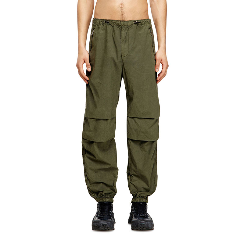 These men’s utility pants skip the cargo pockets but double down on function. Cut from treated cotton poplin, they have a zip fly, bungee-cord waist and voluminous knees for an ergonomic fit. Chunky zips lock the pockets and crack open the elasticated cuffs. Corded side bands – five stripes strong – add an athletic punch, while an embroidered Oval D logo marks the back.