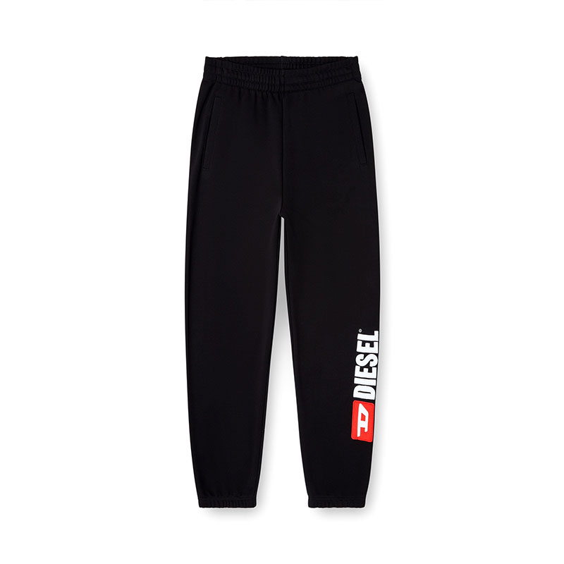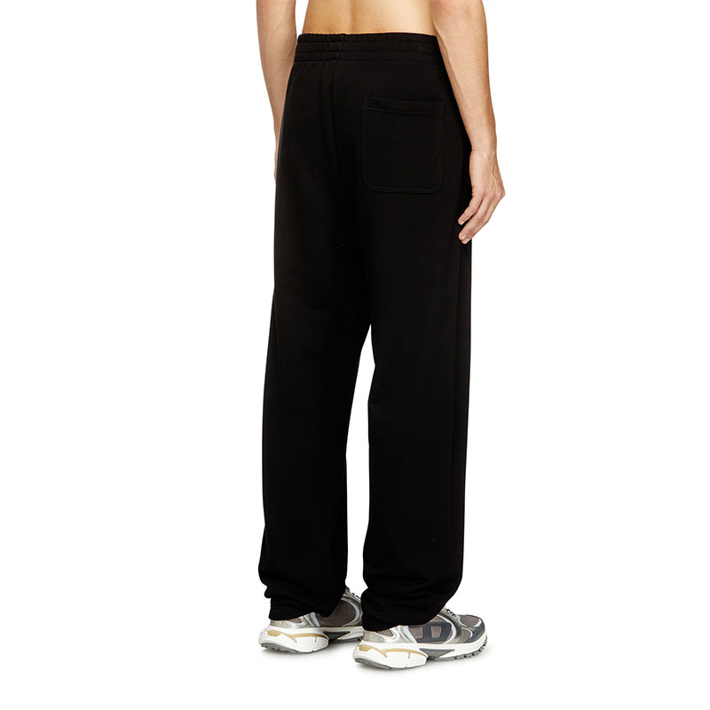 Regular-fit sweatpants with an elastic waistband and elasticated cuffs at the ankles. Made of unbrushed organic-cotton fleece, they feature hidden side pockets and a single pocket at the back. Inside the waistband, a flat cotton drawstring is finished with Oval D printed plastic tips. On the left side, the iconic embroidered Diesel Denim Division patch adds a distinctive touch.