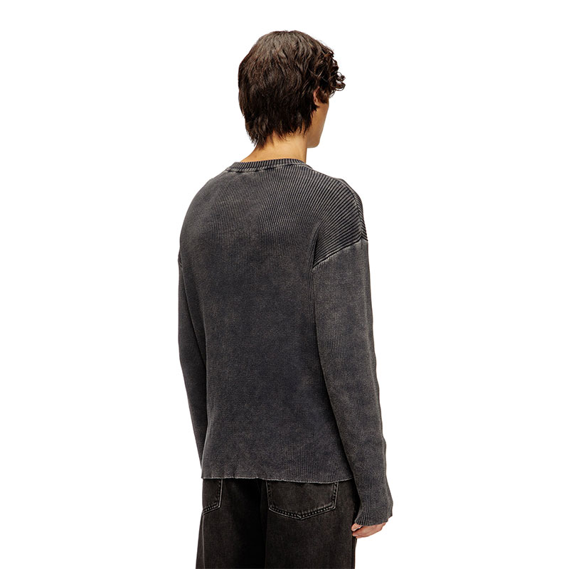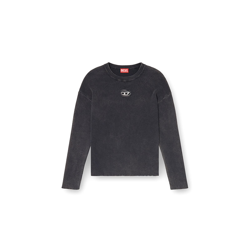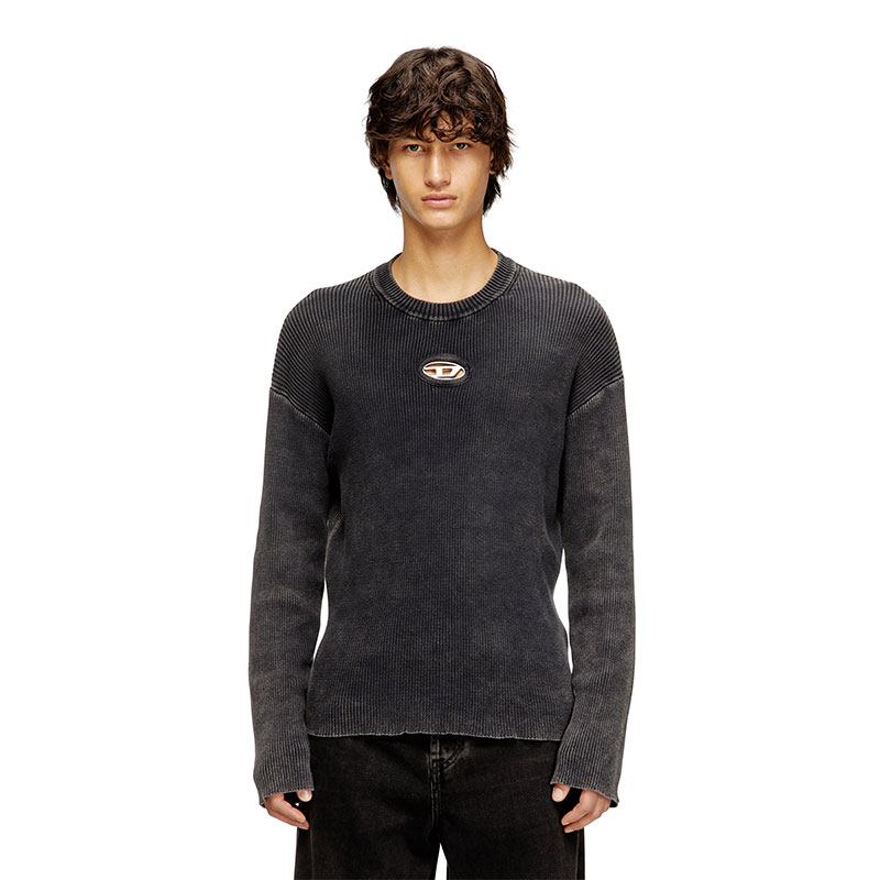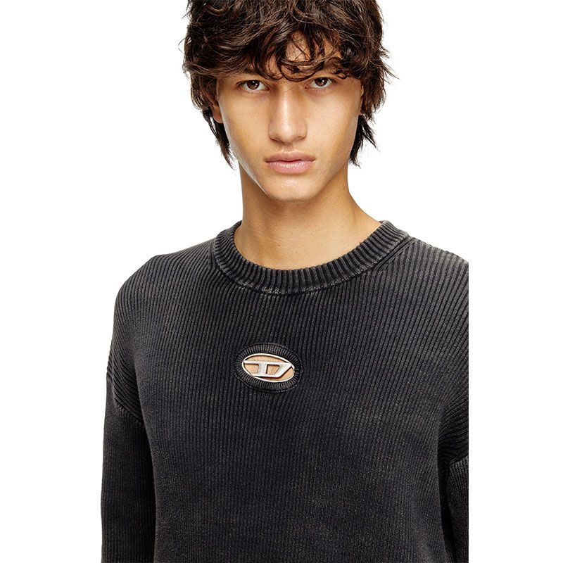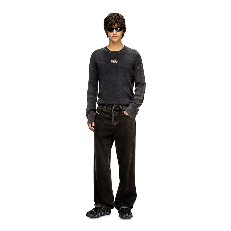 The washed-out hue of this men’s sweater nods to the look of lived-in black denim. Rib-knitted from organic cotton, it has an oversized fit and a cut-out embellished with metal Oval D hardware – the peekaboo design means you can show off a hint of chest or whatever’s layered beneath.