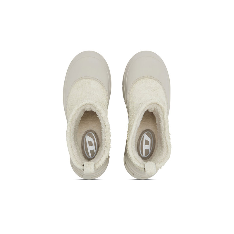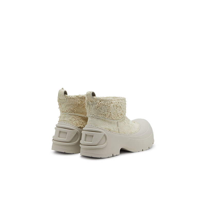 This men's ankle boot is made from soft calfskin suede. The pull on construction is set on a chunky rubber sole which has a custom tread, and rises up to wrap the upper in a juxtaposition of textures that confirms an urban edge. A large molded Oval D wraps the back of the heel, and is printed on the insole.