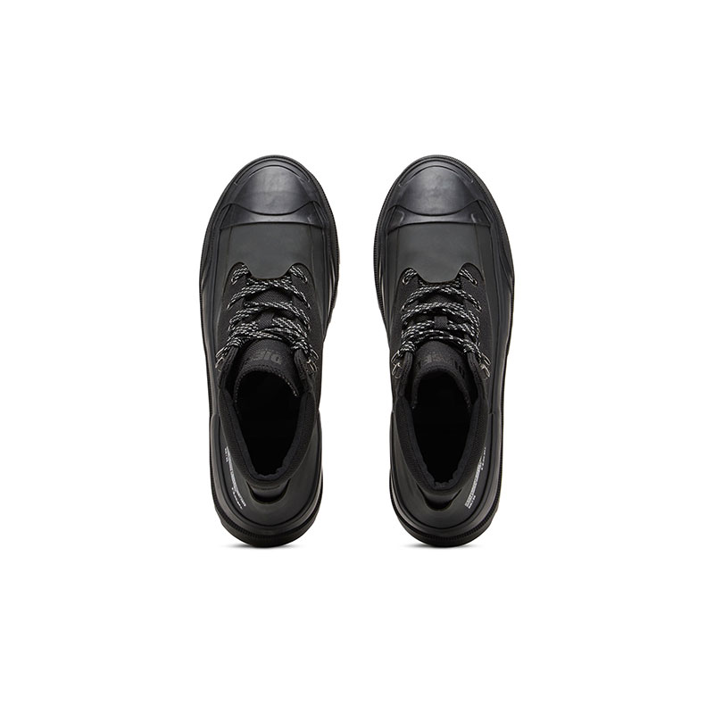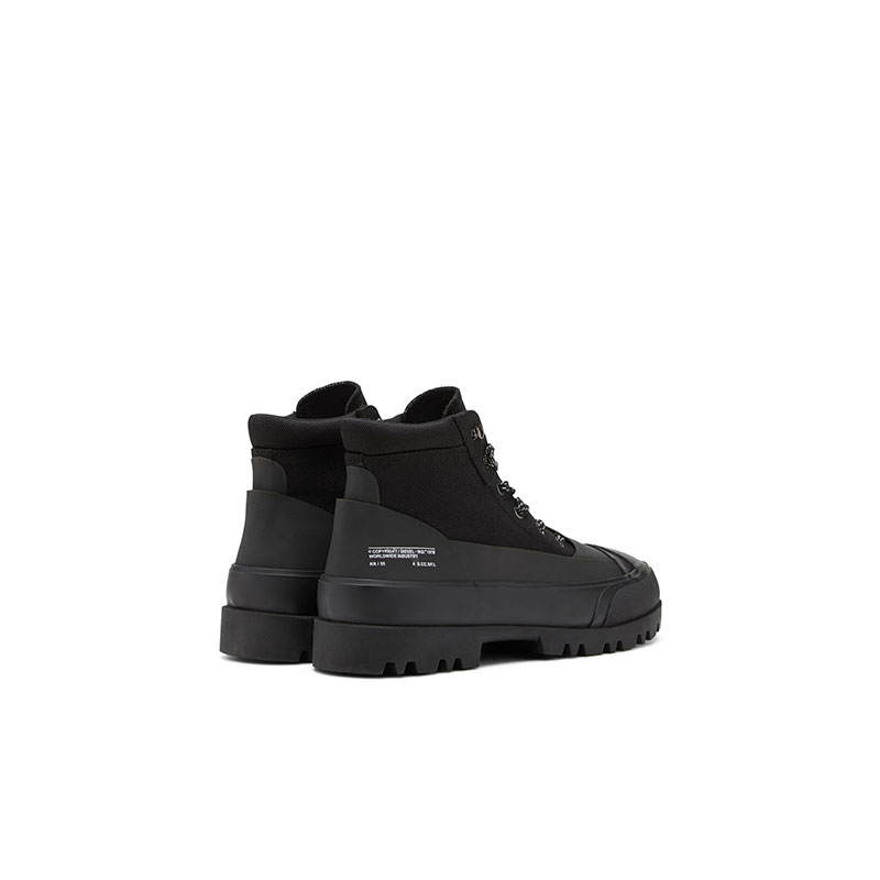Informed by hiking and military styles, these unisex shoes have heavy-duty ballistic-nylon uppers trimmed with layers of rubber that completely cover the vamp. The combination of rubber foxing and rugged lug sole underpins the hybrid sneaker-boot silhouette.