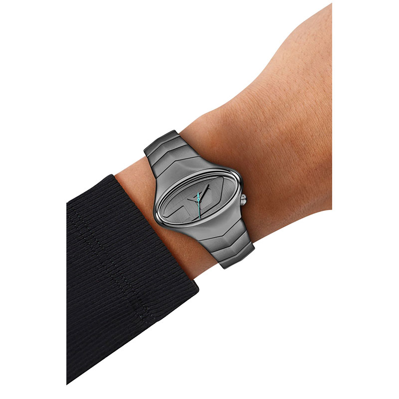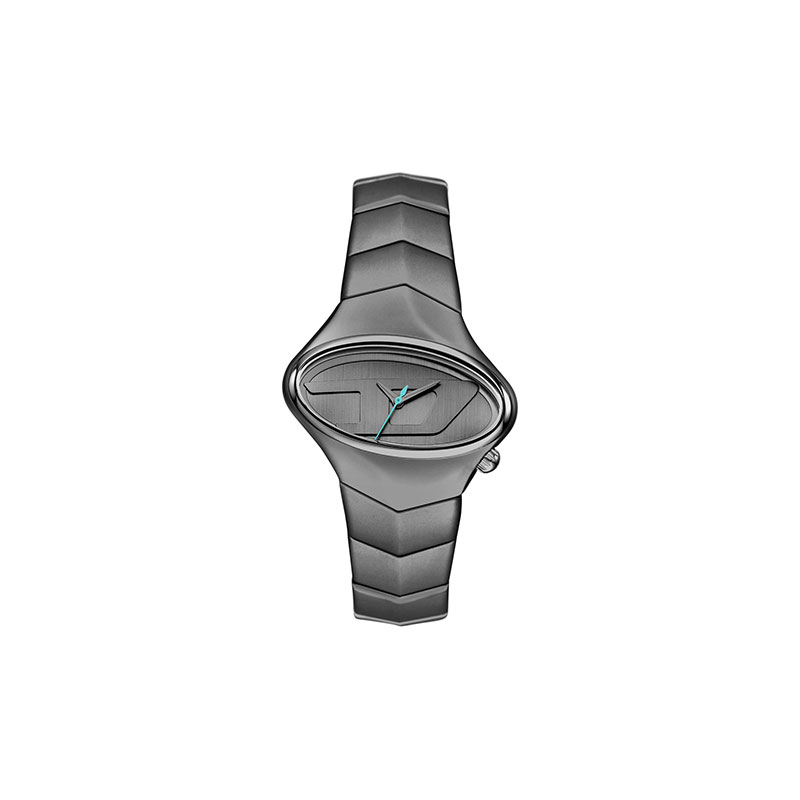 Diesel's 42mm D-Rush watch features a gray brushed dial, three-hand movement and a matte gunmetal Stainless steel bracelet.