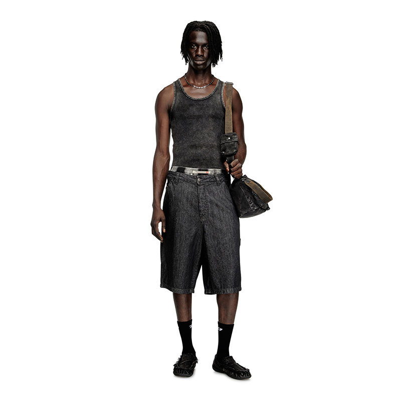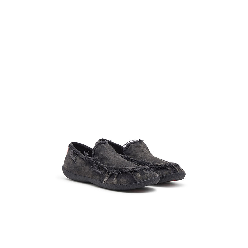Diesel Men D-Shock-Distressed denim loafers Black Y03710P0585