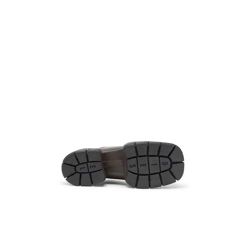 Moccasin DNA meets a monster stole. These men’s lace-up shoes are crafted from brushed brown leather full of lived-in character. Featuring classic moc stitching and squared-off toes, they rest on exaggerated rubber soles with a cool split construction that exposes the upper. Despite the chunkiness, the shoe feels lightweight and extremely comfortable.