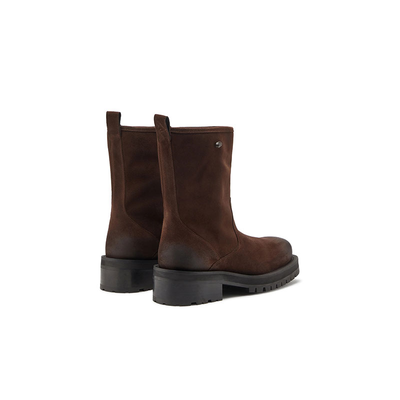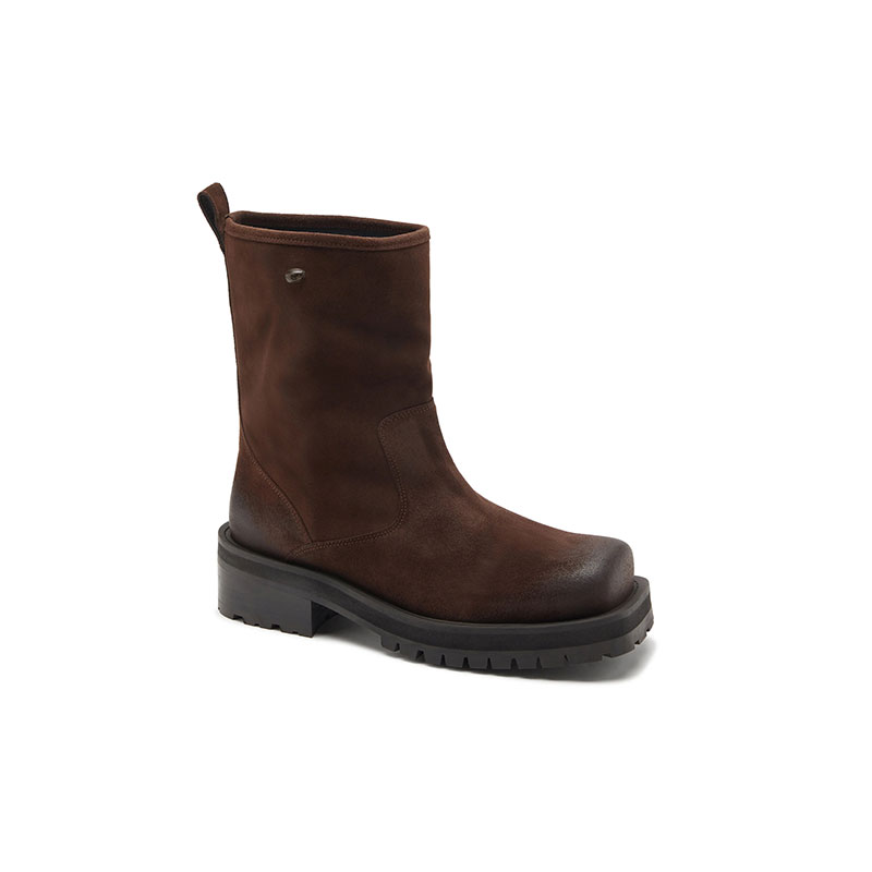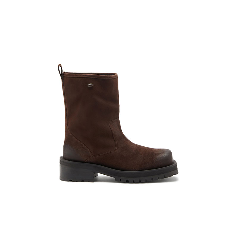 Boots with a robust and appealing design, made of leather for a durable finish. The thick, grooved sole ensures excellent grip, while the slip-on structure makes them easy to put on. A small metal detail with the Oval D logo adds a distinctive touch.