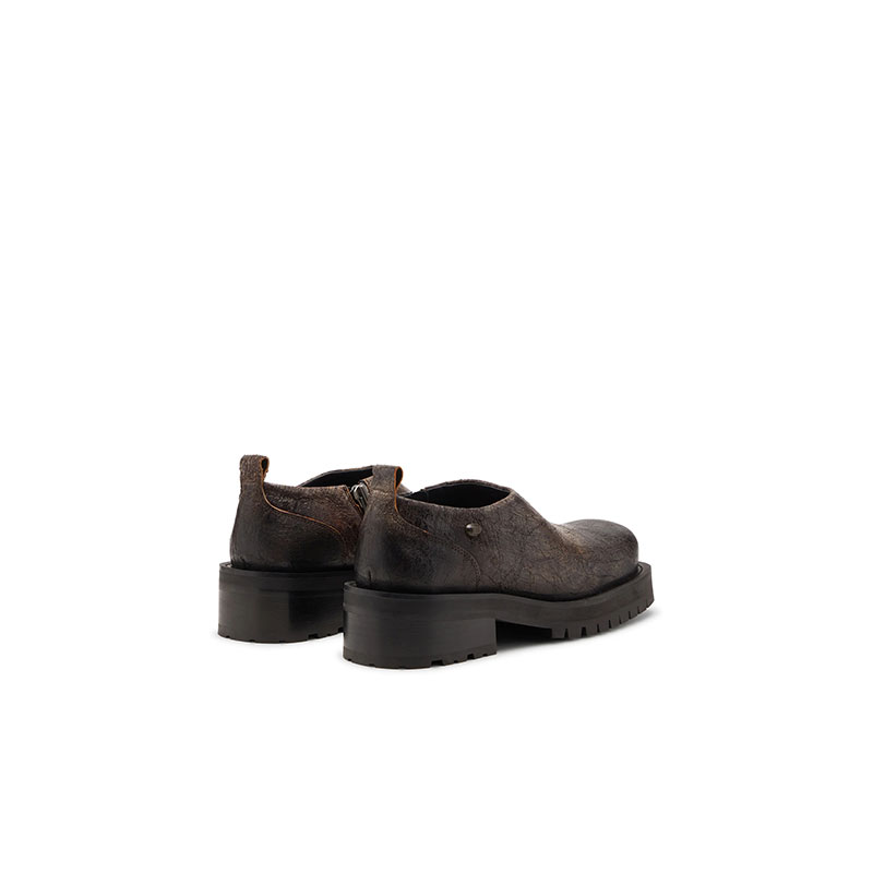 Rugged, distressed and beaten-up, these men's hybrid clogs look they've been through the wringer. Crafted from high-quality brown waxed suede with a crackle texture, they have darkened squared-off toes and chunky rubber lug soles. The zipped upper is cut below the ankle and subtly detailed with rusty-effect metal D hardware in the shape of a bubble.