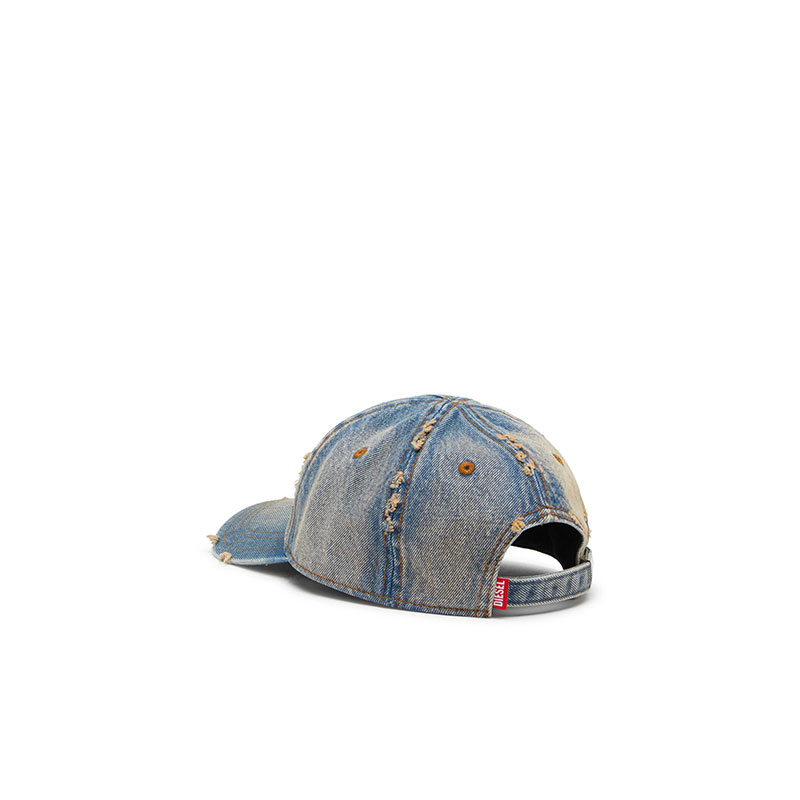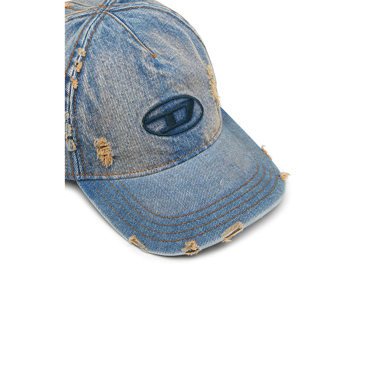 Diesel Men Denim cap with frayed details and embroidered logo Blue Jeans A215410IHCB