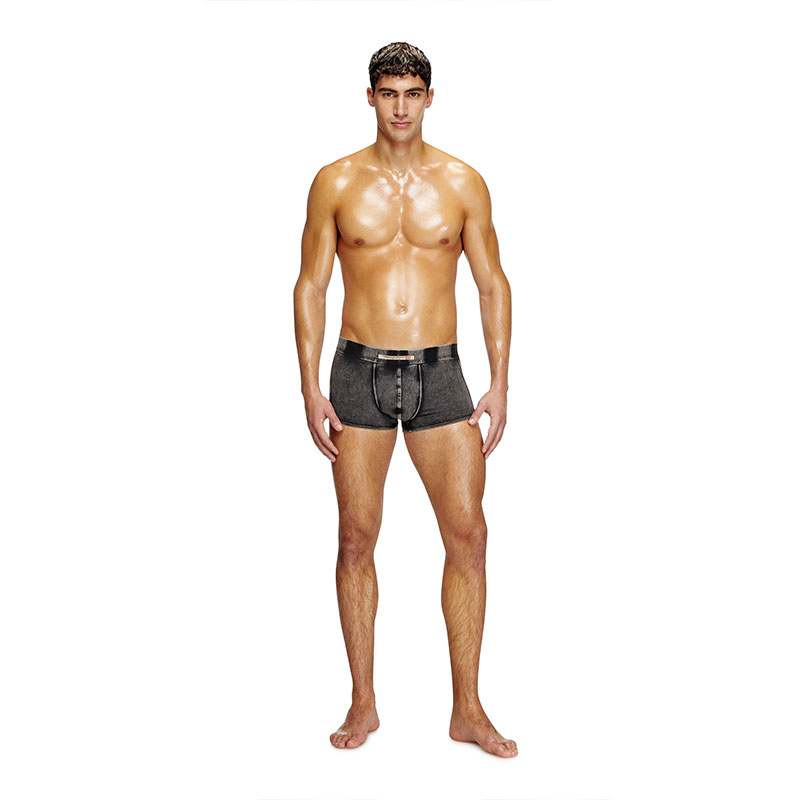 These men's stretch cotton boxers are dyed and treated for a denim effect, complete with classic tobacco stitching. Finished with the iconic fifth pocket logo on the front.