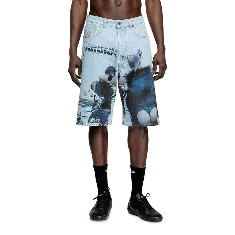 Diesel Men Denim shorts with faded print Light Blue P015970CMBM