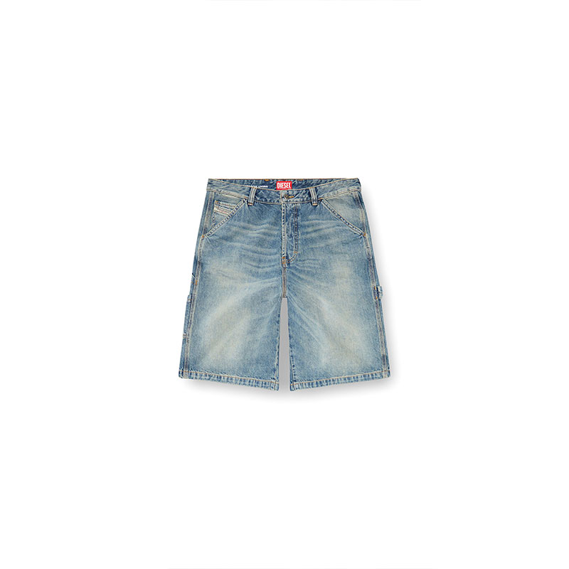 These men’s denim shorts feature a relaxed-leg, knee-length fit and workwear-inspired details, such as the hammer loop and small patch pockets on the side of the leg.