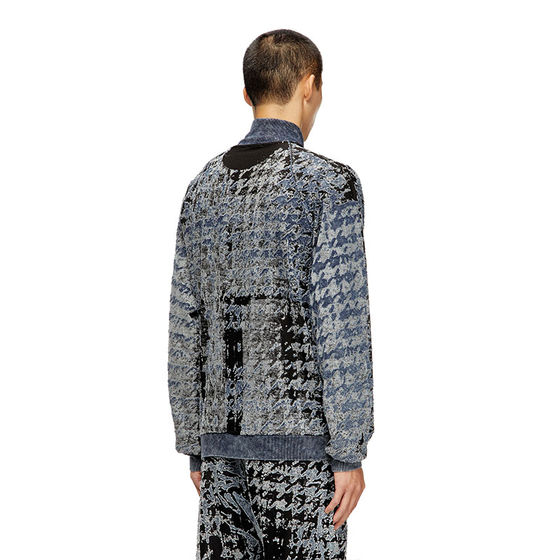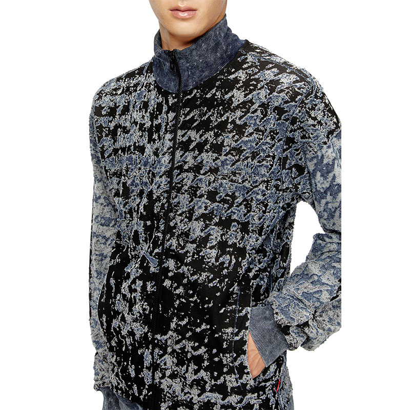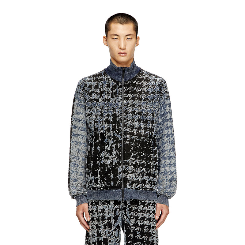 Diesel Men Devoré houndstooth zip-up top Black/Blue A210860PGBE