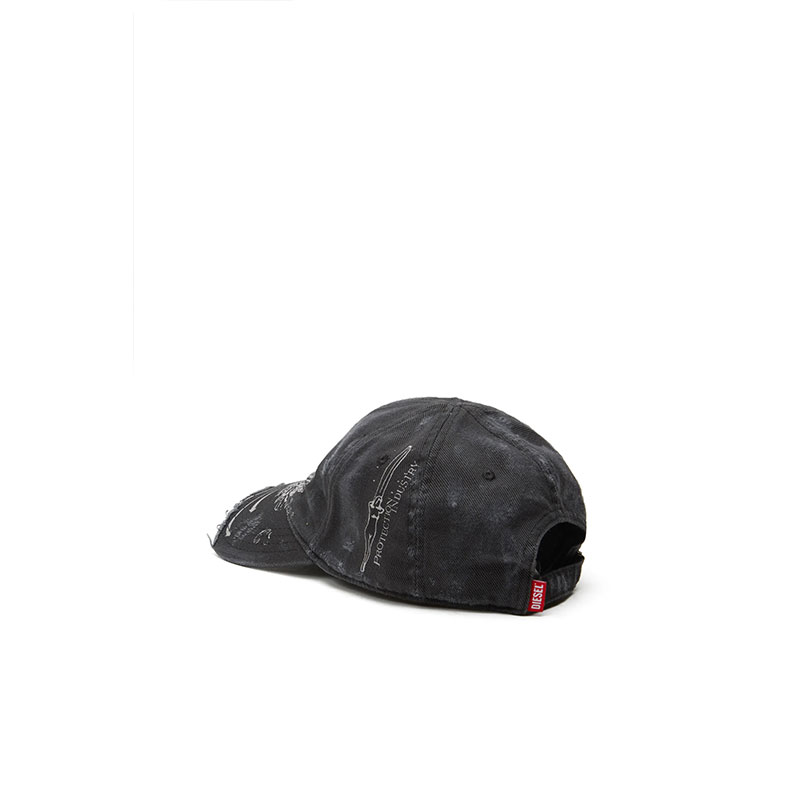 Men's baseball cap in robust and durable cotton gabardine, detailed with a digital-print Phoenix logo and contrast stitching. This hat been heavily treated and frayed for a signature destroyed look.