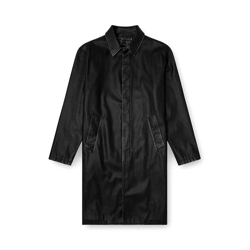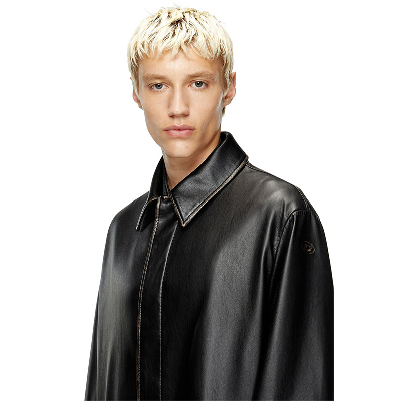 This men's sleek black car coat has been brushed by hand to create a distressed effect along the edges and seams. Detailed with an embossed Oval D logo on the sleeve, it has a regular fit and a falls to a knee length. The check flannel lining at the body adds a graphic touch and lightweight insulation.