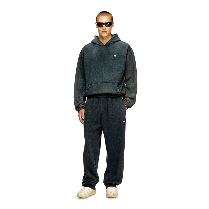 Regular fit pants have undergone an acid washed process for a unique texture and a lived-in effect. They feature a comfortable drawstring waist and ribbed finish at the ankles. On the back, there is a convenient patch pocket, while the side pockets are concealed with the left one being decorated with the logo.