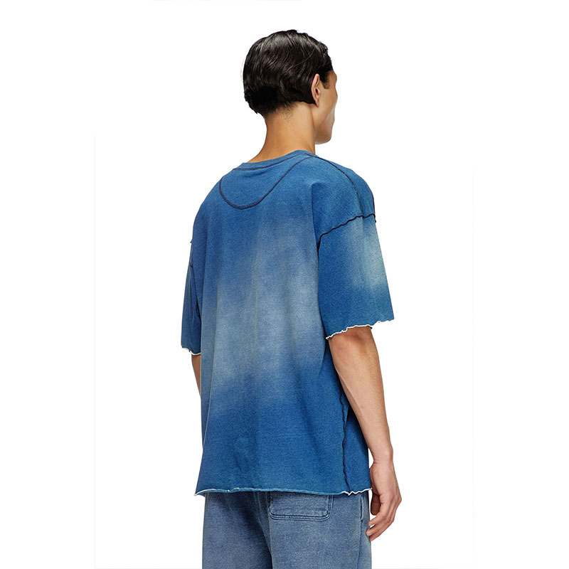 This men’s T-shirt is made from weighty cotton jersey and softly faded right through the middle. Cut for a relaxed fit, the silhouette is accented with tactile seams, contrast overlock stitching and darts framing the crew neck. A micro-sized embroidered logo hallmarks the chest.