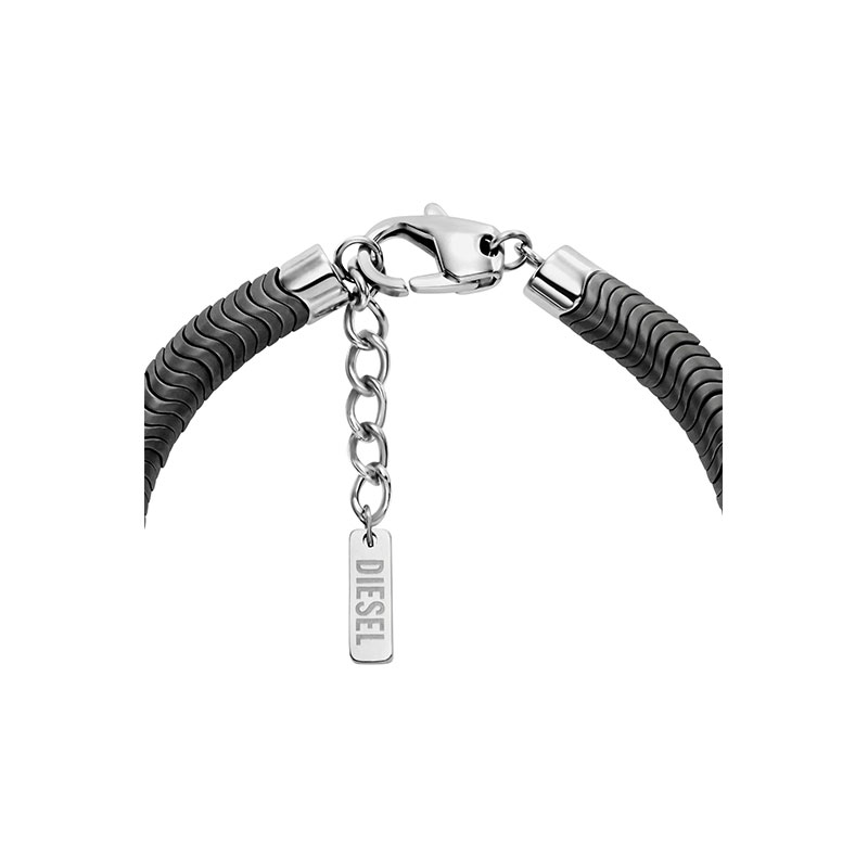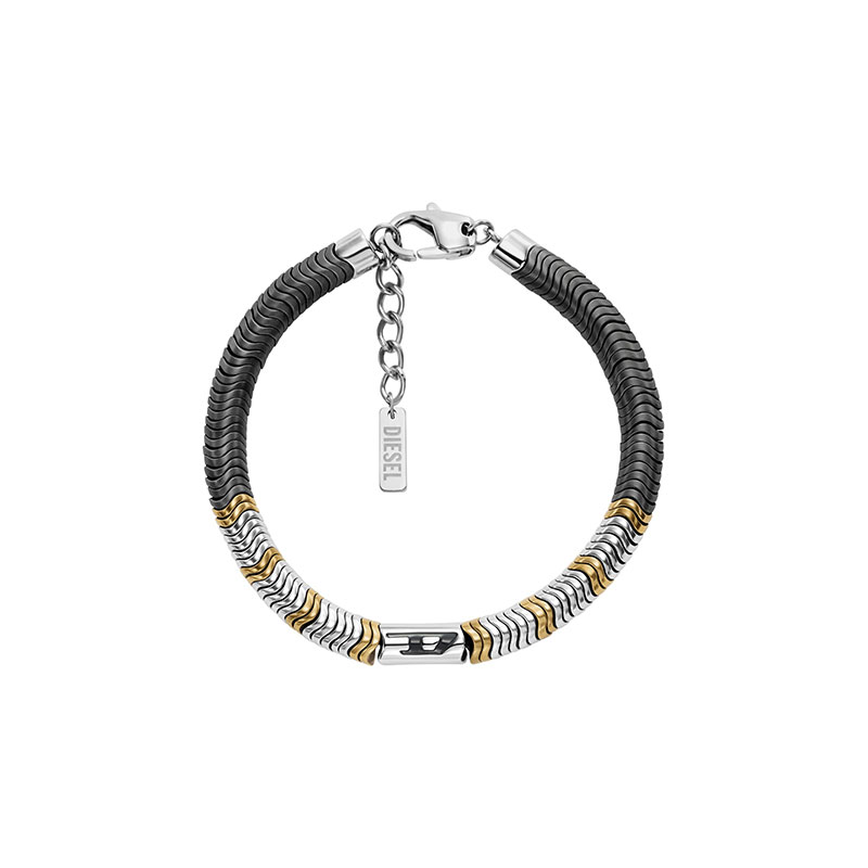 Diesel's beaded bracelet is crafted from hematite and stainless steel and features a secure lobster clasp closure. Inspired by the 90's, this gold, gunmetal, and silver bracelet offers a modern take on a classic, beaded style.