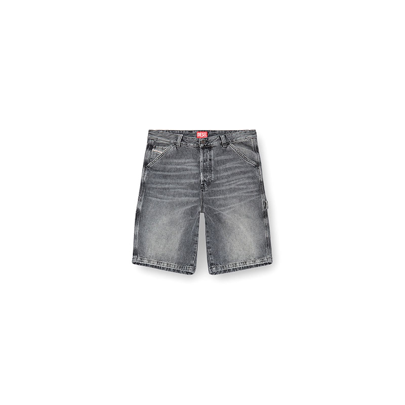 These men’s denim shorts feature a relaxed-leg, knee-length fit and workwear-inspired details, such as the hammer loop and small patch pockets on the side of the leg.