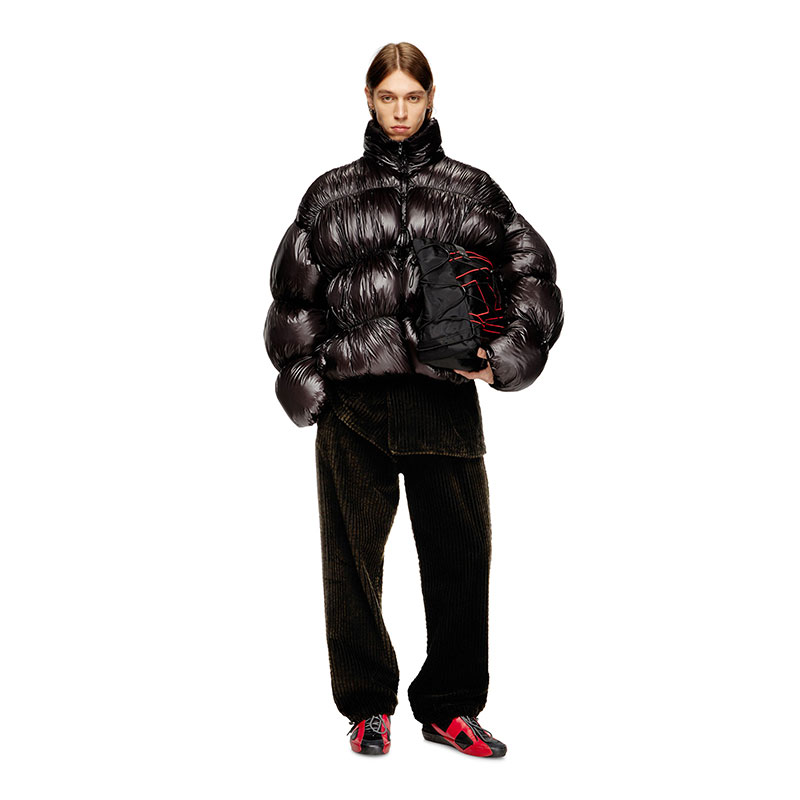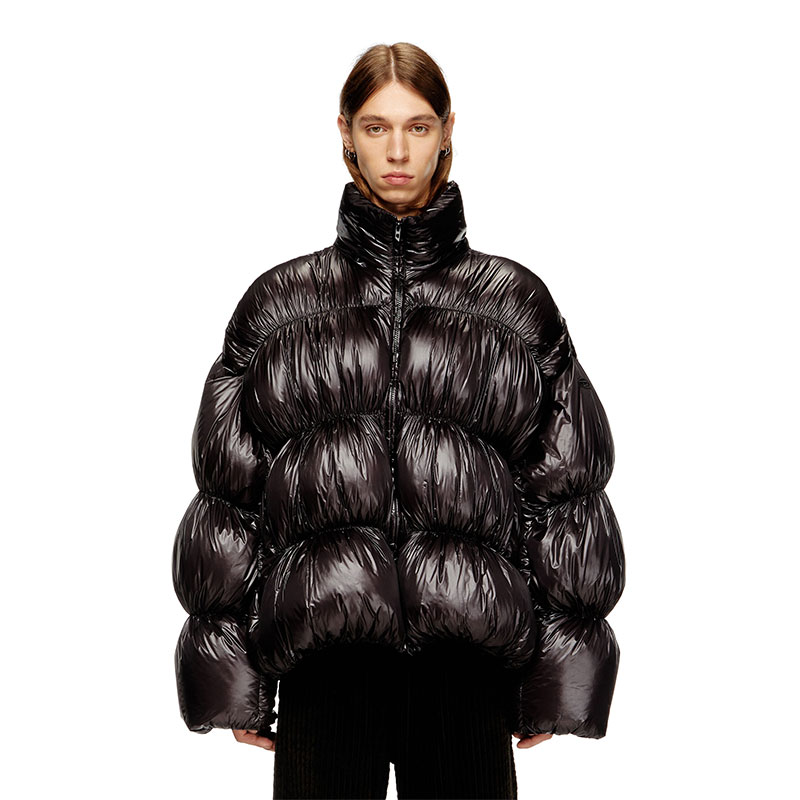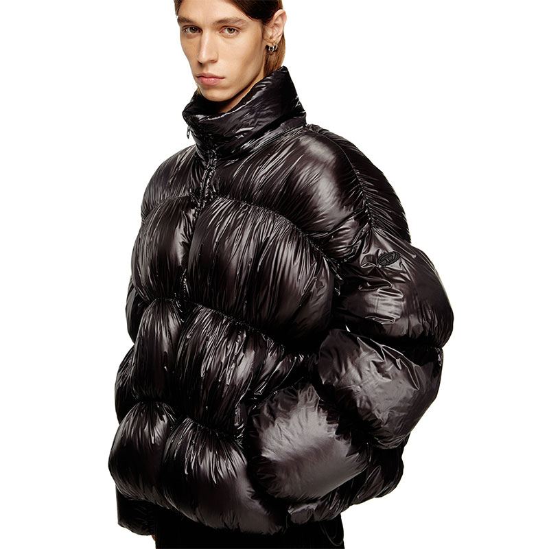 This men’s quilted jacket has an outstanding winter-proof capability powered by insulating down. Detailed with an Oval D patch on the sleeve, it's made from ultra-light nylon in an exploded bubble-like shape and has a pack-away hood hidden in the collar. Cinch the drawstrings at the cuffs and hem to make it even toastier.