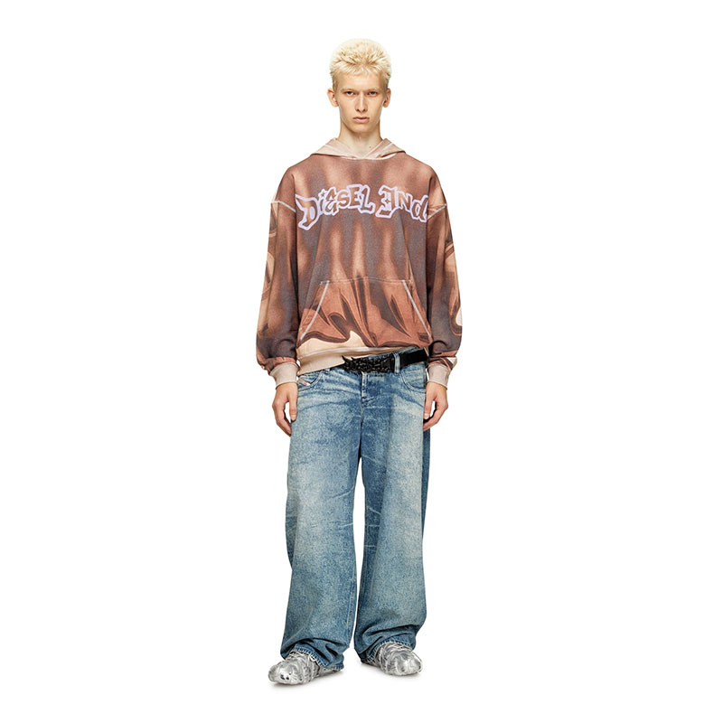 This men's hooded sweatshirt is an exclusive FW25 Runway Show style, nodding to Diesel's out-there graffiti installation with a gritty street-style print. Built for a relaxed fit from 100% organic cotton jersey, it's finished with Diesel Industry branding on the chest.