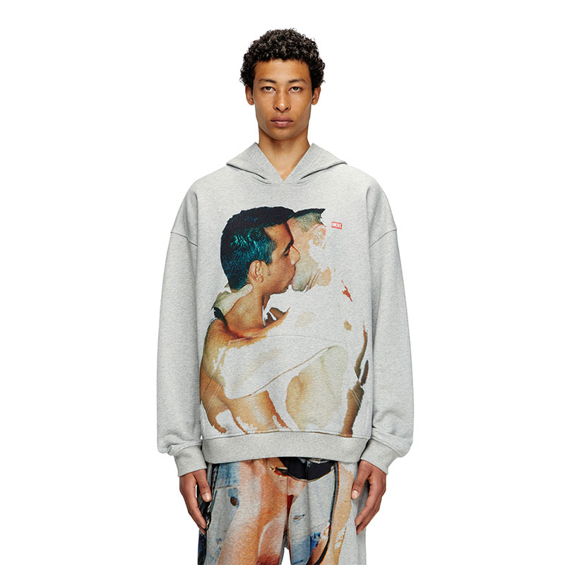 This hooded sweatshirt is part of an annual Pride capsule created in collaboration with the Tom of Finland Foundation. A genderless design, it’s made from mélange loopback jersey using organic cotton and fits a little boxy. The printed graphic depicting a male couple engrossed in a kiss has been selected from the Foundation’s vast collection of erotic queer art. Complete with a rubber-touch chest logo and a rear herringbone tape featuring an inspiring quote from Tom of Finland himself.