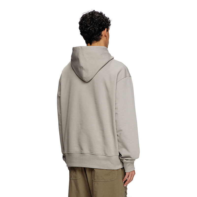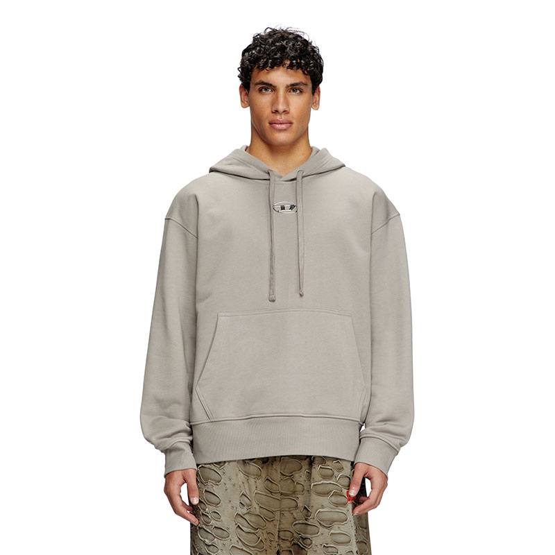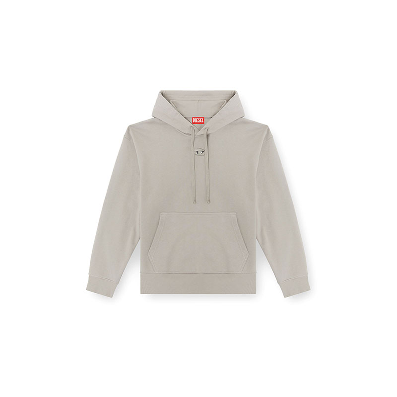 Men's hoodie in loopback jersey, crafted using organic cotton. This piece is cut for an oversized fit and embellished with a more-than-meets-the-eye Oval D – the silver logo looks like a metal plaque, but is in fact synthetic, created using an injection moulding technique.