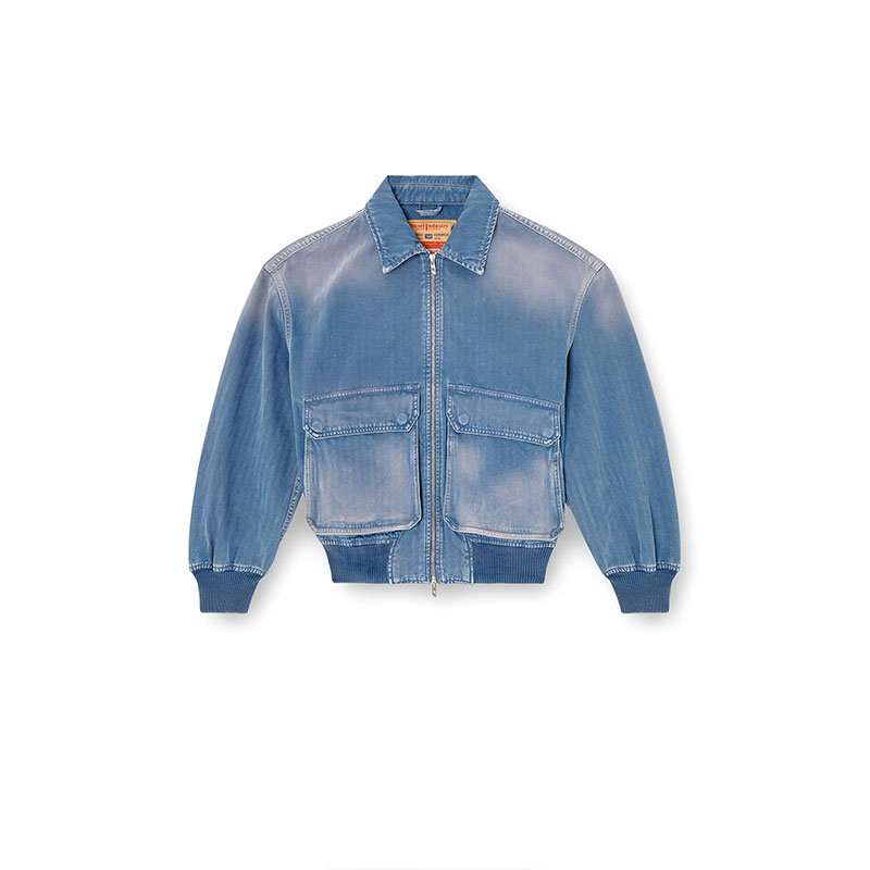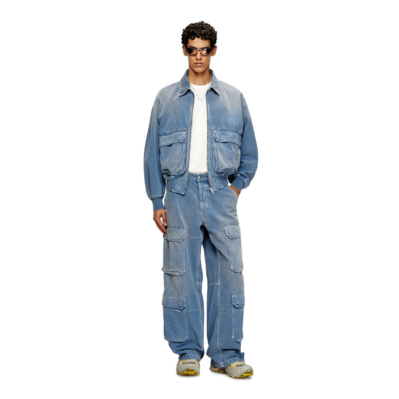 Designed to lend an edgy twist to everyday "uniform" dressing, this fix denim stands out with a refined herringbone pattern in a soft indigo colour, creating a subtle pinstriped effect. This exclusive wash is part of Diesel's DNA selection, showcasing the brand's heritage and essential style codes. Available only in Diesel flagship stores and on diesel.com.