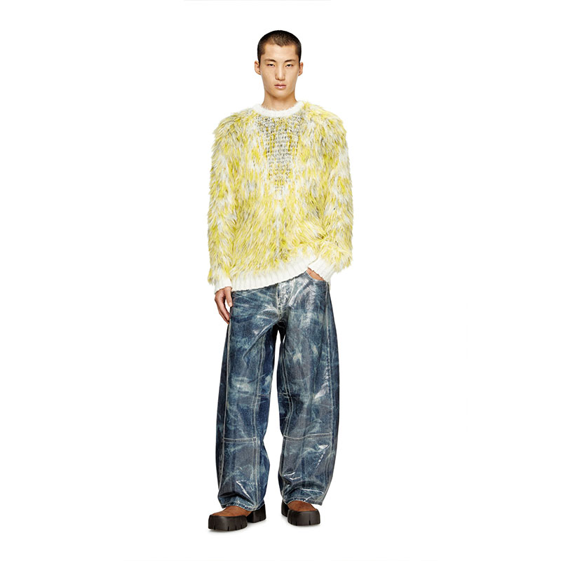 Part of the Fall Winter 2025 Runway Show collection, this men's sweater is an ultra-fluffy multicolour jacquard knit cut with fearless jolts of acid yellow. Designed for a regular fit.